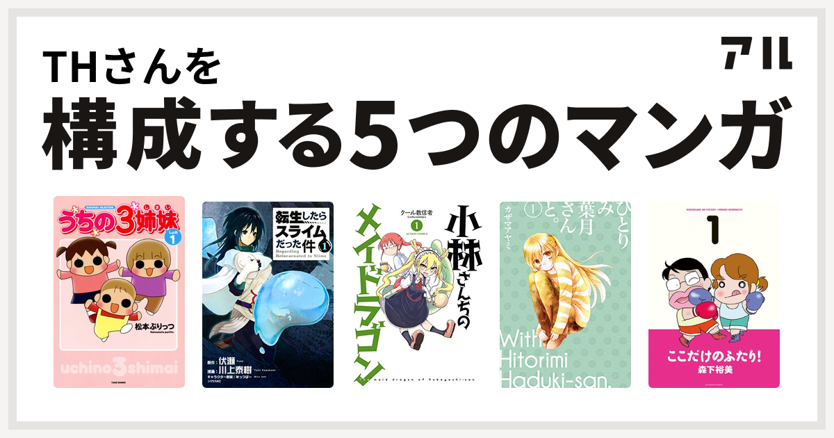 Thさんを構成するマンガはうちの3姉妹 転生したらスライムだった件 小林さんちのメイドラゴン ひとりみ葉月さんと ここだけのふたり 私を構成する5つのマンガ アル